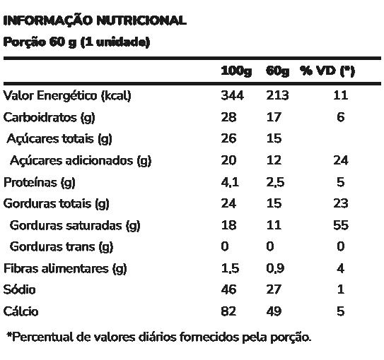 ALTO EM AÇÚCAR ADICIONADO. ALTO EM GORDURA SATURADA. CONTÉM LACTOSE. NÃO CONTÉM GLÚTEN.