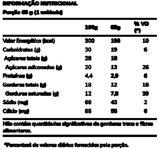 ALTO EM AÇÚCAR ADICIONADO. ALTO EM GORDURA SATURADA. CONTÉM LACTOSE. NÃO CONTÉM GLÚTEN.