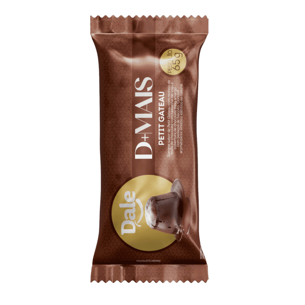 Sorvete sabor artificial de Petit Gauteau com recheio de trufa de chocolate com castanha-de-caju e cobertura de chocolate meio amargo com pedaços de biscoito – 65g.