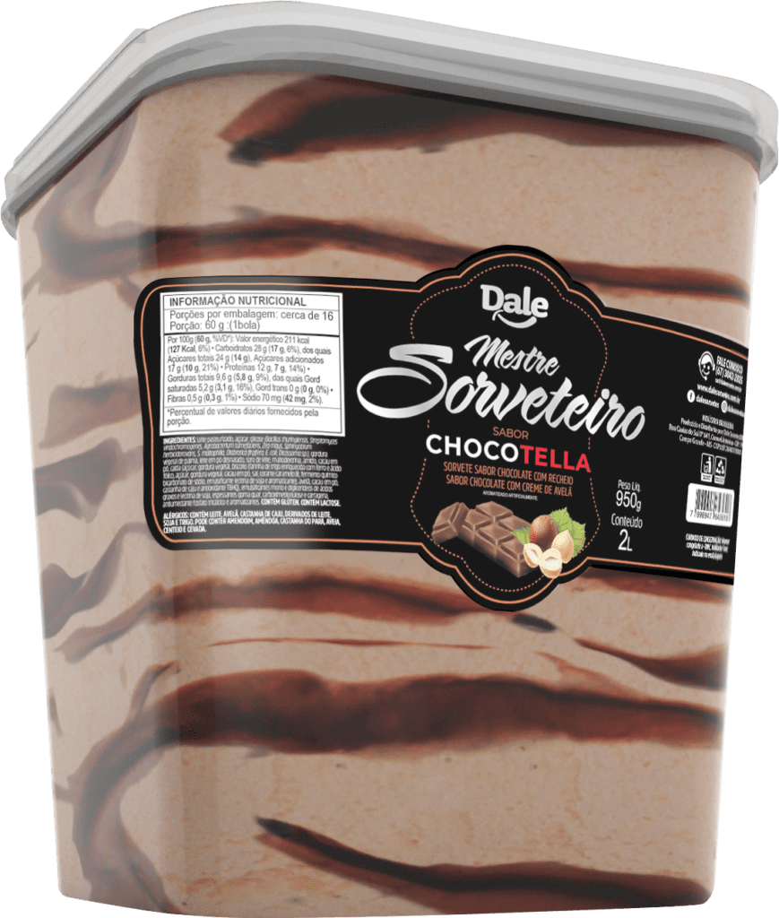 Leite pasteurizado, açúcar, glicose (Bacillus thuringiensis, Streptomyces viridochromogenes, Agrobacterium tumefaciens, Zea mays, Sphingobium herbicidorovans, S. maltophilia, Diabrotica firgifera, E. coli, Dicossoma sp.), gordura vegetal de palma, leite em pó desnatado, soro de leite, maltodextrina, amido, cacau em pó, calda (açúcar, gordura vegetal, biscoito (farinha de trigo enriquecida com ferro e ácido fólico, açúcar, gordura vegetal, cacau em pó, sal, corante caramelo III, fermento químico bicarbonato de sódio, emulsificante lecitina de soja e aromatizante), avelã, cacau em pó, castanha de caju e antioxidante TBHQ), emulsificantes mono e diglicerídeos de ácidos graxos e lecitina de soja, espessantes goma guar, carboximetilcelulose e carragena, antiumectante fosfato tricálcico e aromatizantes.