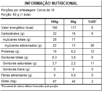 Leite pasteurizado, açúcar, gordura vegetal de palma, glicose, leite em pó desnatado, mescla (açúcar, água, cereja, glicose, amido, acidulante ácido cítrico, conservador sorbato de potássio, corantes vermelho 40, vermelho bordeaux e azul indigotina, espessantes carboximetilcelulose e goma xantana), soro de leite, maltodextrina, amido, leite em pó integral, sal estabilizante mono e diglicerídeos de ácidos graxos, espessantes goma guar, carboximetilcelulose e carragena, antiumectante fosfato tricalcico e aromatizante.