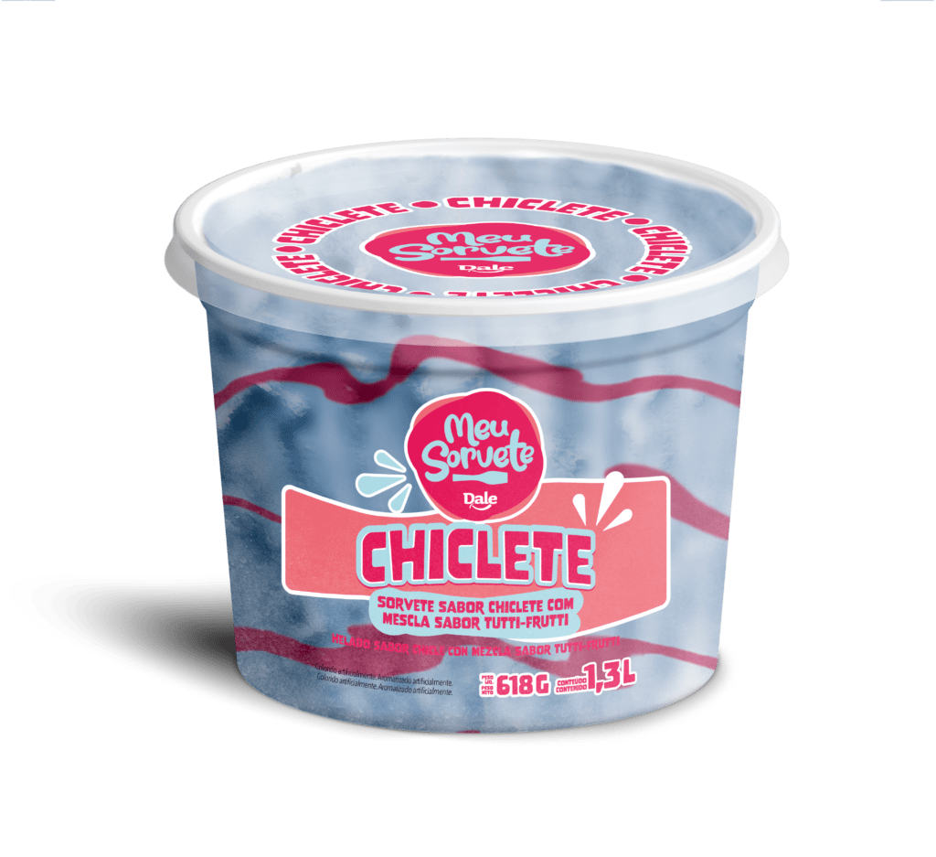 Um pote com cara e gosto de infância. Uma mescla de sabor, diversão e refrescância. O nosso sabor chiclete faz com que você sinta a goma de mascar na boca, junte isso à cremosidade única da Dale, pronto! Temos um sabor só nosso.